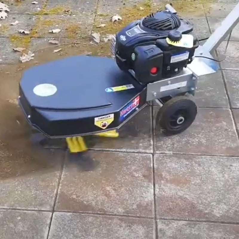 Fliserenser udlejes med helt nye børster så du nemt kan rense dine fliser for alger, mos og snavs. Lejer står selv for påfyldning af almindelig 4 takts benzin.