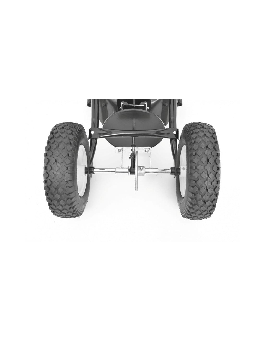 Omrøreren drives af hjulenes bevægelse, som også starter spredningsprocessen. Sprederen er velegnet til brug sommer og vinter og spreder f.eks. gødning og frø samt vejsalt, sand eller grus.
