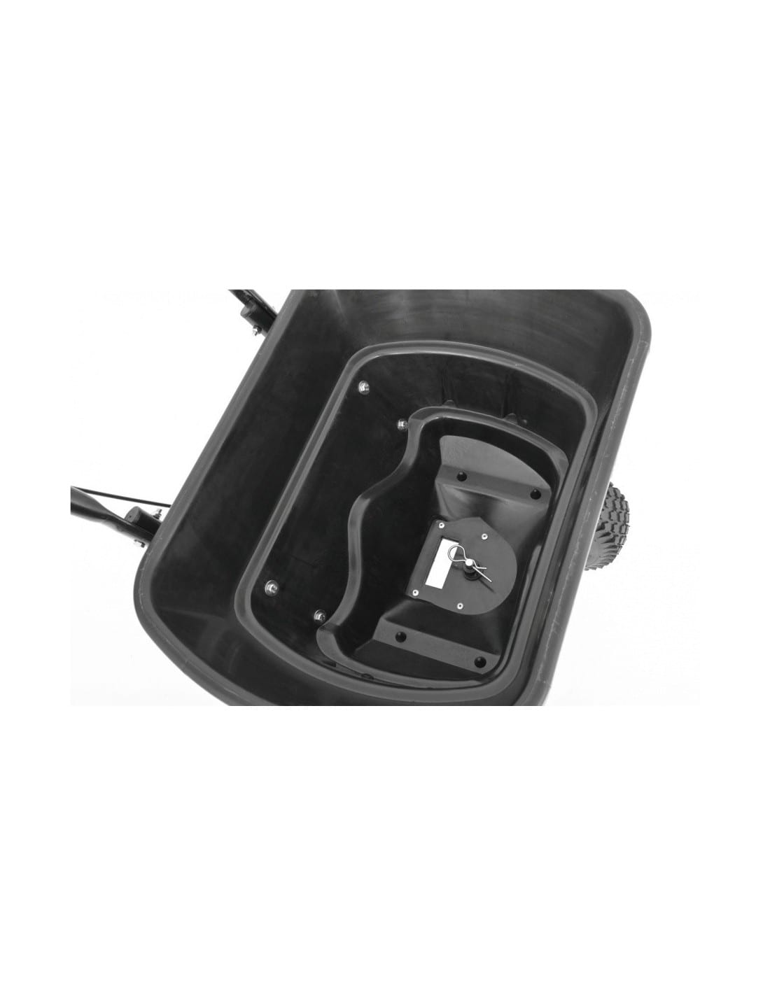 Hele konstruktionen er holdbar og lav vedligeholdelse på grund af dens enkelhed og rene udførelse. Plastspredebeholderen med en kapacitet på 29 liter sidder på en stabil stålrørskonstruktion. Gødningssprederens beholder kan rumme op til 36 kg vægt. Sprederen bevæges af to store pneumatiske dæk med en gribende slidbane.