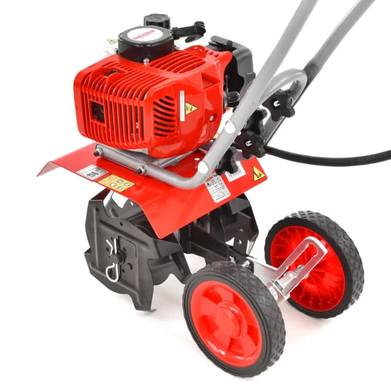 Benzin kultivator med 25 cm bredde. 51,7 cm3 motor med 1,5 kW effekt. Vægt 14,5 kgm.