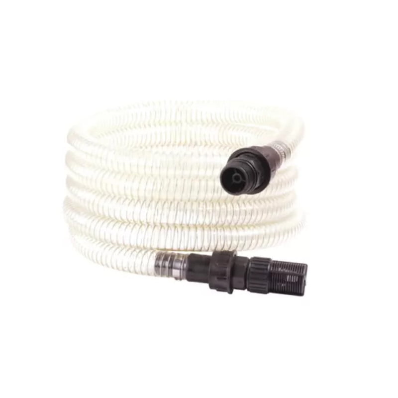 1″ suge slange med nem afkortning til den ønskede længde. Suge kurven er udstyret med en kontraventil så vandet ikke løber fra slangen. Suge kurven er også med et filter der tager de lidt større urenheder så de ikke kommer op igennem slangen.