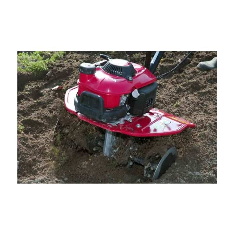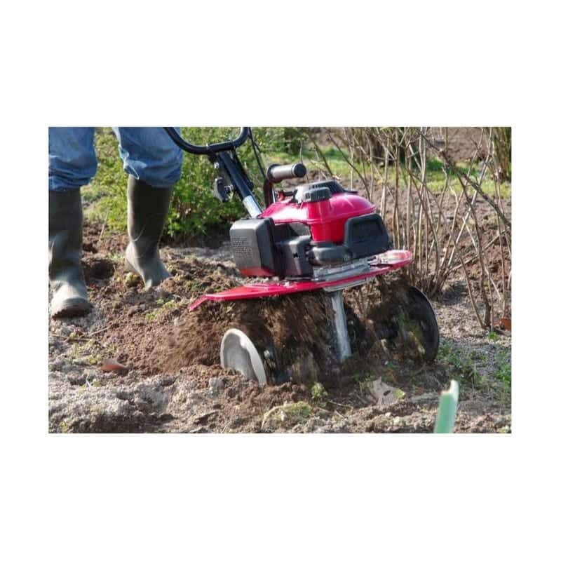 Handy havefræser der er særdeles effektiv mellem havens buske og træer – en uundværlig hjælper i urtehaven. Har en lille, stærk, miljøvenlig og støjsvag 4-takt motor på 1,9 kh, GXV 50, der starter hver gang. Fræsebredde på 45 cm med en diameter på 24 cm med rulleskær. Vejer kun 20,5 kg. Leveres med transporthjul. Den miljøvenlige og effektive havefræser fylder ikke meget, og giver ingen generende benzinos eller vibrationer.