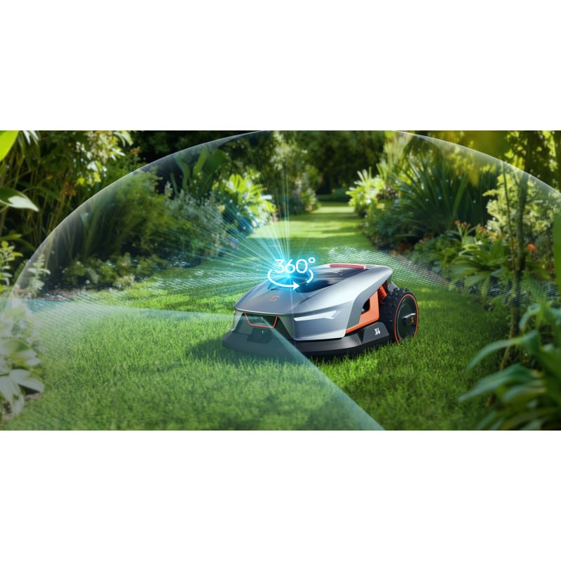 LiDAR kombineret med kamera giver præcis genkendelse af forhindringer som havemøbler, træer og krukker – og robotten navigerer elegant udenom.