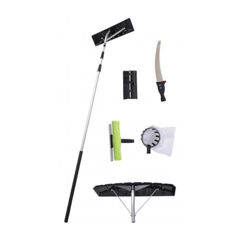 Teleskopskaft havesæt 10 i 1 er en alsidig og praktisk løsning til havearbejde. Dette havesæt indeholder en række værktøjer, herunder en tag sneskraber, en børste og skraber, en frugtplukker, en børste og en beskæresav. Med dette sæt kan du nemt og effektivt udføre forskellige opgaver i din have. Skaftet er teleskopisk, hvilket giver mulighed for at justere længden efter behov, og det gør det også let at opbevare og transportere.